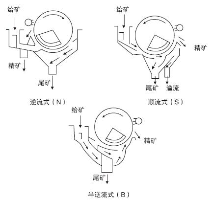 永磁筒式磁选机适用于湿式选别细颗粒的强磁性矿物,或者除去非磁性矿物中混杂的强磁性矿物。本机可以连续给矿和排矿,磁场深度大,工作间隙大,具有较高的处理能力。其原理是当矿浆进入磁场区时,其中强磁性矿物被吸附在圆筒表面,弱磁性和非磁性矿物被甩掉排出,而吸附在圆筒表面的强磁性矿物随圆筒旋转,被带出磁场区,用冲洗水冲入精矿槽中,完成分选作业。