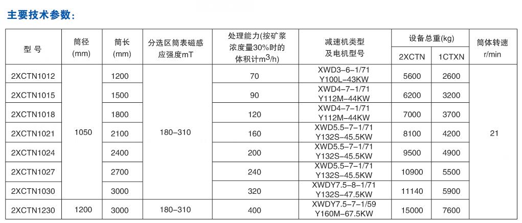 永磁筒式磁选机适用于冶金矿山矿业选矿、选矿厂等企业事业单位及个人用户,用于选别细颗粒的磁性矿物,或者,除去非磁性矿物中混杂的磁性矿物。永磁筒式磁选机选筒表面磁场强度远高于普通永磁磁选机,易于操作管理及维护,在各类选矿厂现场使用时具有明显的节能省电性能。该永磁筒式磁选机的磁选圆筒可配三种槽体,即半逆流槽(CTB)、顺流槽(CTS)和逆流槽(CTN),以适应不同的选别要求。半逆流槽永磁筒式磁选机适用于矿石粒度为0.5~0mm的粗选和精选,尤其适用于粒度为0.15~0mm矿物的精选;顺流槽永磁筒式磁选机适用于矿石粒度为6~0mm的粗选和精选;逆流槽永磁筒式磁选机适用于矿石粒度为0.6~0mm的粗选和扫选,以及选煤工业重介质回收。